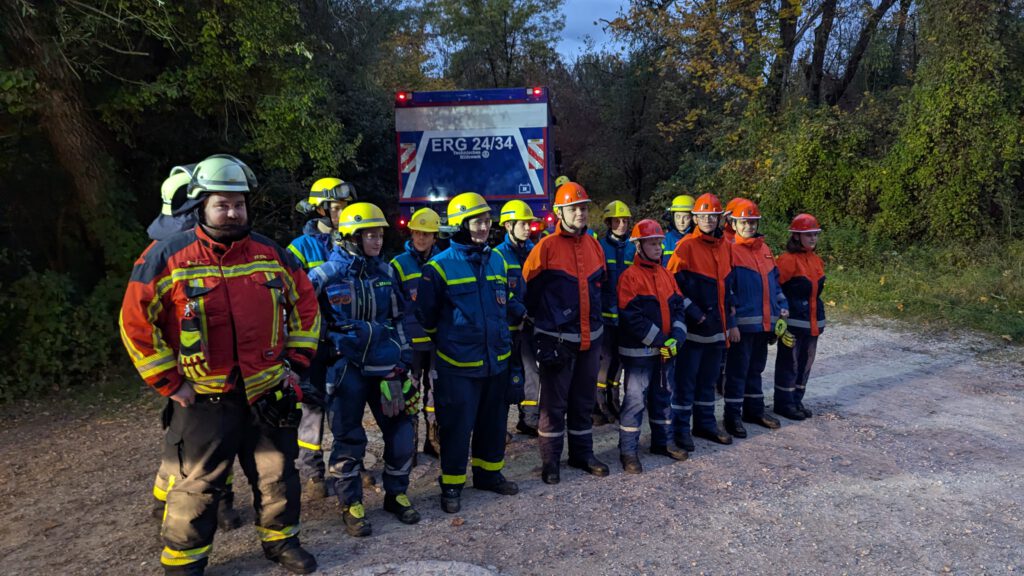 Da es bereits Oktober ist, wurde es im Verlauf der Übung zunehmend dunkel – beste Gelegenheit, auch die gemeinsame Beleuchtung von Feuerwehr und THW in Betrieb zu nehmen. So konnte die Übung sicher und effektiv abgeschlossen werden.