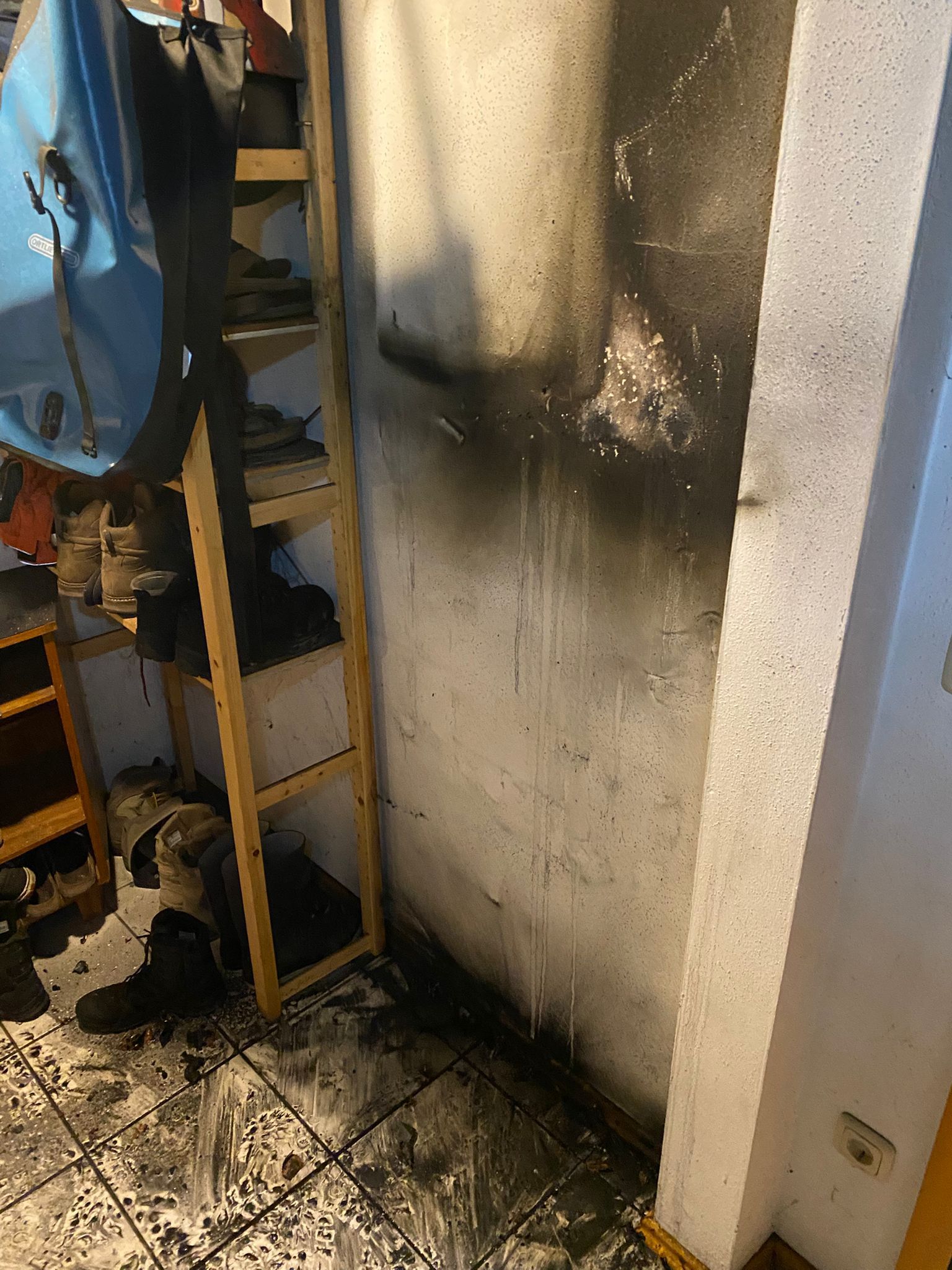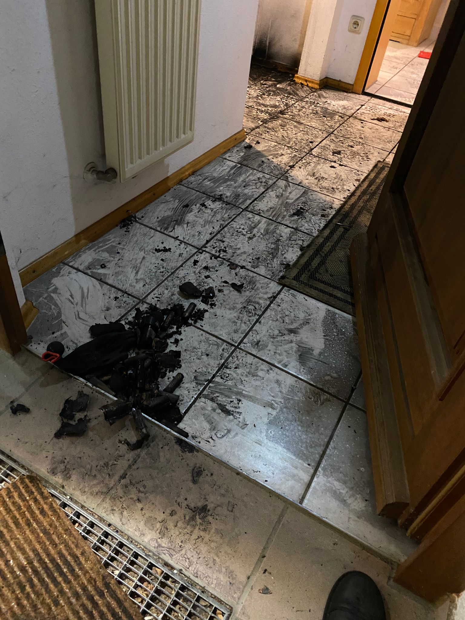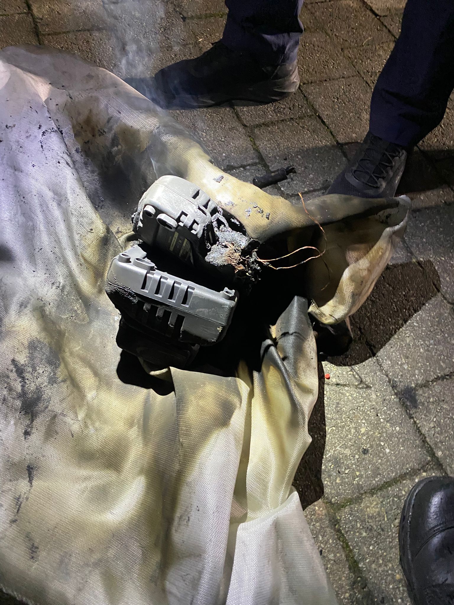 Da vor allem der Brandrauch solcher Akkus hoch giftige und gesundheitsschädliche Stoffe freisetzen kann, ging unser Angriffstrupp unter schwerem Atemschutz in das Gebäude vor. Der betroffene Bereich wurde mittels Wärmebildkamera kontrolliert, um versteckte Glutnester auszuschließen. Außerdem wurde der Eingangsbereich geräumt und das Gebäude intensiv belüftet, um die Rauchgase aus dem Gebäude zu entfernen.